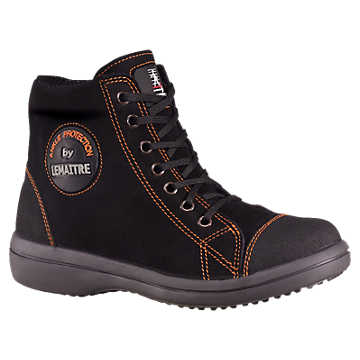 Chaussure haute en velours hydrofuge noire, look Streetwear, doublure textile 3D SPACER , semelle PARABOLINE / PU2D, embout 200 joules acier, semelle anti-perforation acier inoxydable. EN 20345 : 2011.