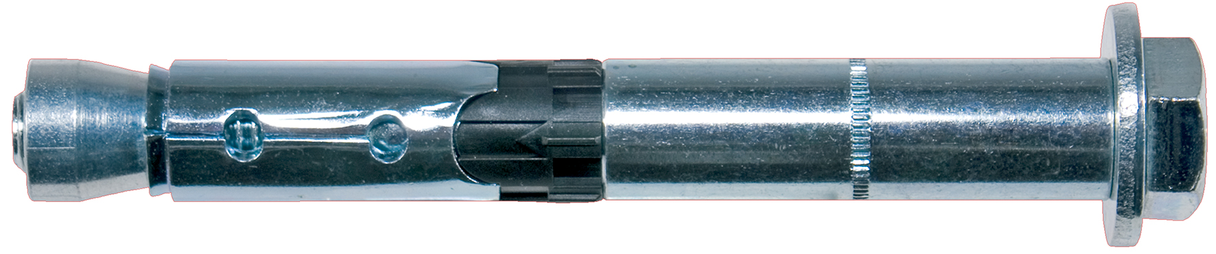 Cheville traversante pour des fixations dans le béton fissuré – L‘action combinée de la vis et de la douille permet des charges de cisaillement importantes. Tête hexagonale (type S), Agrément ATE ETA-07/0025 & ETAG 001-2 Classe de résistance au feu R120.