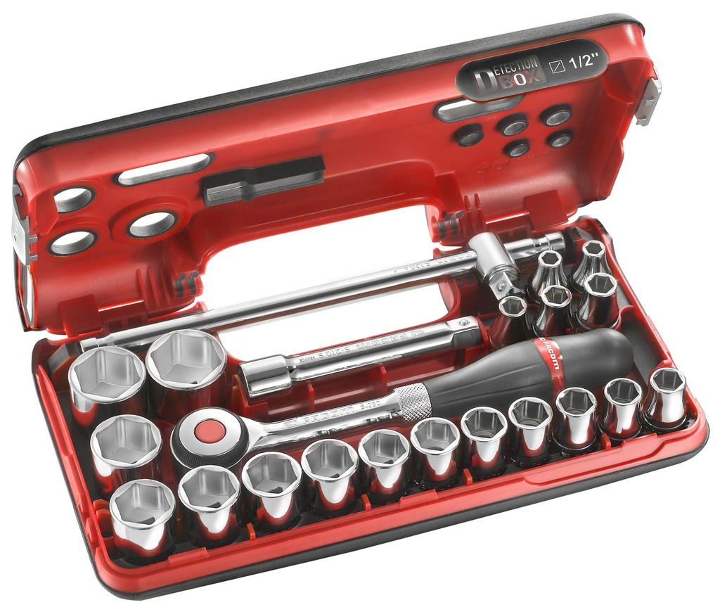 Contient : • 1 cliquet 1/2″ étanche Hautes Performances – 19 douilles 1/2″ 6 pans métriques – 1 poignée coulissante 1/2″ – 1 rallonge angulaires 1/2″.
