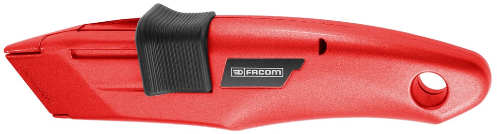 • Couteau de sécurité.• Rappel automatique de la lame en fin d’application.• Corps en zamac.• Bouton poussoir en ABS avec positionnement du pouce en frontal ou en latéral.• Livré avec 3 lames (1 lame montée + 2 lames en magasin dans le corps).