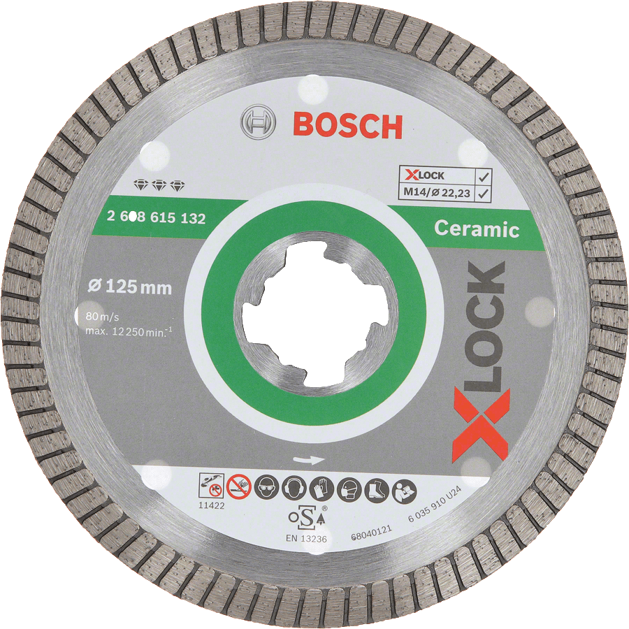 Disque à tronçonner diamanté Best for Ceramic Extra Clean Turbo X-LOCK permet des coupes très nettes dans la porcelaine. Alésage : 22,23mm – Largeur de coupe : 1,4mm