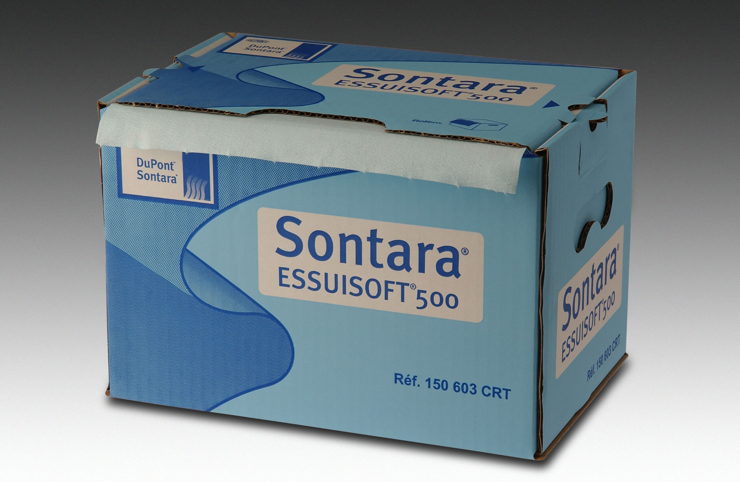 Essuisoft 500 – Essuyage non tissé SONTARA Crêpée Turquoise – essuyage de précision à forte absorption – 28×38 cm – 1 boîte distributrices rouleaux avec 200 formats prédécoupés. Bleu