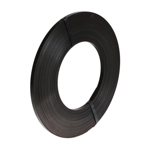 Feuillard acier laqu? noir et cir? Conditionnement en galettes plates (RW) Protection anti-corrosion assur?e par enduction d?une couche de peinture noire