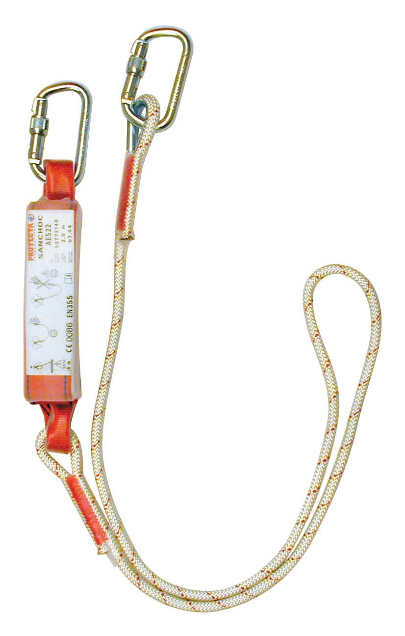 Longes à absorption d’énergie. Corde 10,5mm, longueur 2m avec 2 mousquetons à vis AJ501 ouverture 17mm.