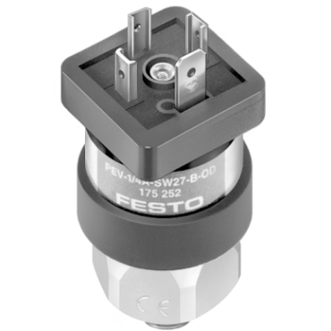 Ouvre et ferme un circuit électrique dès qu’une pression définie est atteinte. Point de commutation réglable. Sans connecteur femelle. Pression de 1 à 10 bar.