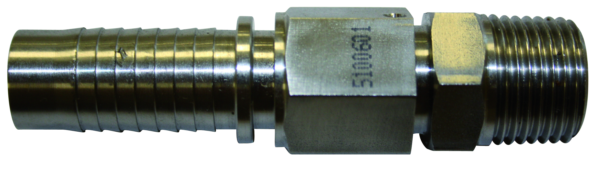 Raccord fileté tournant cannelé mâle BSPT. A collerette. Préparé pour ressort. Inox 316L. Diamètre raccord 1/2 »