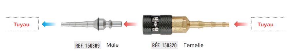 Raccords rapides permettant le branchement de plusieurs chalumeaux alternativement sur une même installation. Ils sont compatibles avec tous les autres raccords relevant de la même norme. Les raccords ISO équipés de clapets anti-retour pare flamme incorporés assurent à l’utilisateur un maximum de sécurité selon la formule 2 en 1. en évitant notamment la multiplication de raccordements tuyaux/olives qui sont des sources potentielles de fuites.