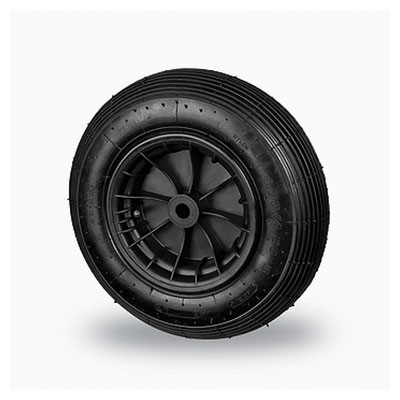 Roue avec corps de roue polypropylène – bandage pneumatique – moyeu lisse – axe de 25 – longueur de moyeu 74 – diamètre de la roue : 400mm.