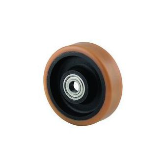 Roue avec corps de roue acier – bandage polyuréthane – moyeu à billes – axe de 20 – longueur de moyeu 70.